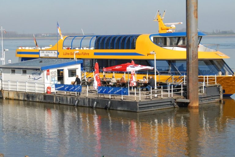 Der eigentliche Lühe Anleger ist ein Schwimmponton auf der Elbe, gehalten von zwei Dalben, an dem die Fährschiffe festmachen. Auf dem Anleger/Ponton befindet sich die Perle von LA, der Wellenreiter. Ein Platz zum Futtern, Klönen, Chillen, die Seele baumeln lassen, entspannen, Schiffe schauen und fühlen.